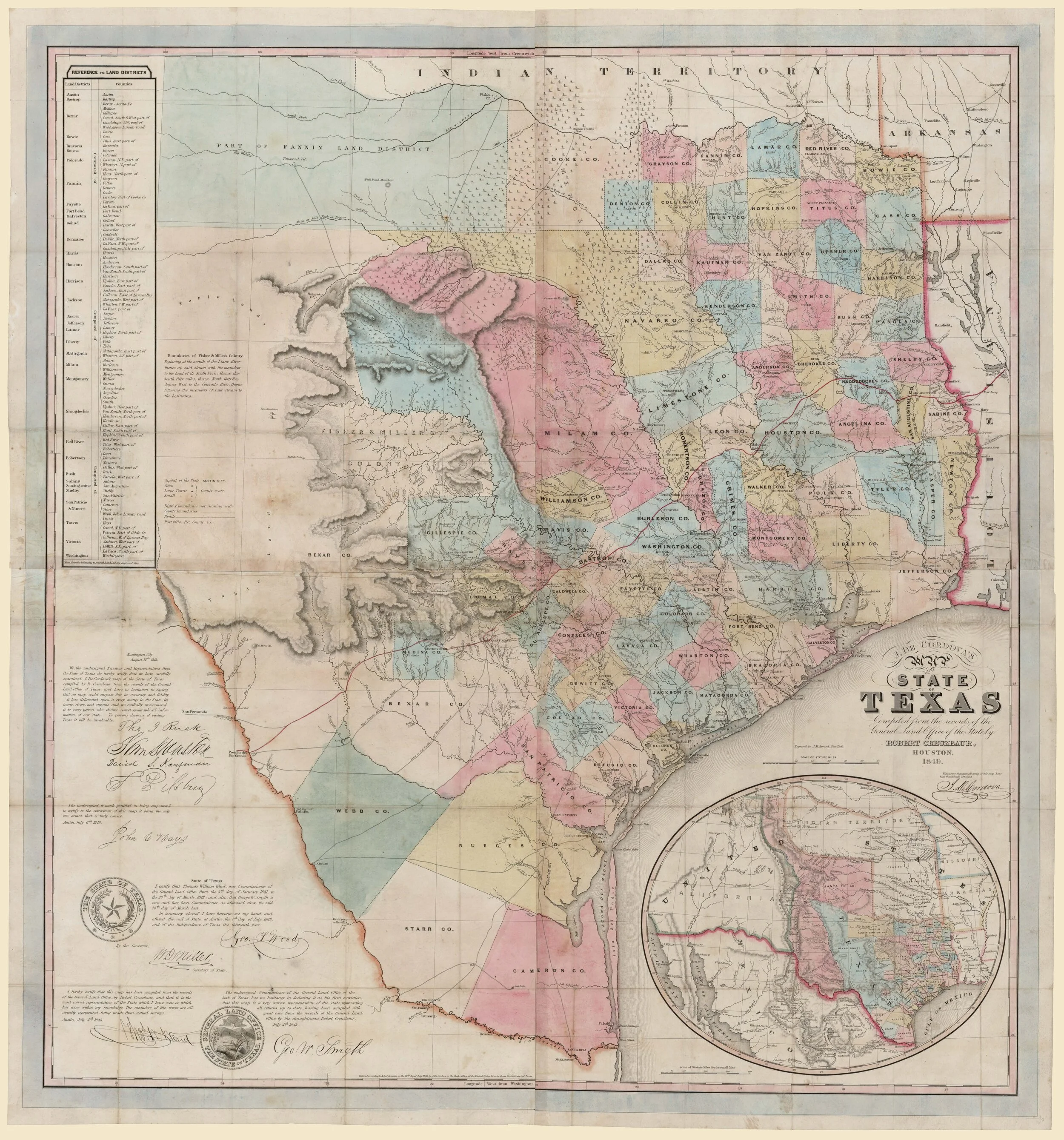 Texas map collectors are passionate about their history and the mapping of their state. The Texas General Land Office (GLO) has developed Save Texas History Archive Map Store in which over 45,000 maps are available online. Included is the Frank and Carol Holcomb Map Collection. The site allows search by various categories including counties.